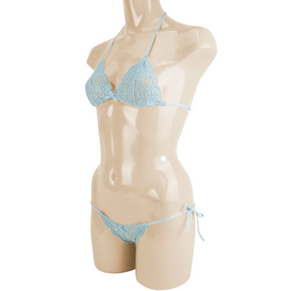 ストレッチフラワー総レースブラ&ショーツ サックス