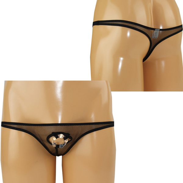 トップページ > メンズ ショーツ・ビキニ > 極薄穴あきイボリング付きTバック ブラック