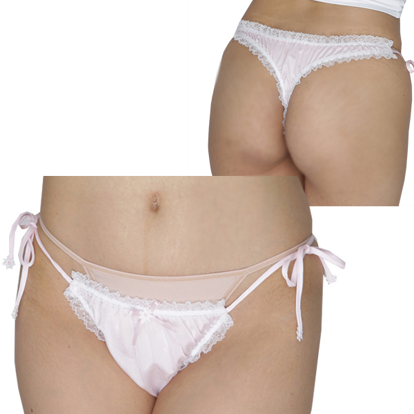 フリフリレースをあしらい可愛く仕上げた光沢の美しい日本製Tバック。