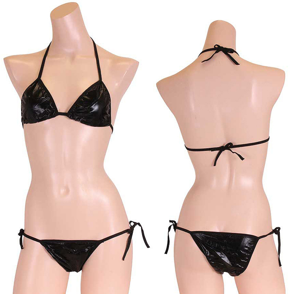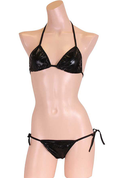 ギラリと光る黒のメタリック生地が格好いいビキニセット(黒)。