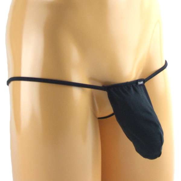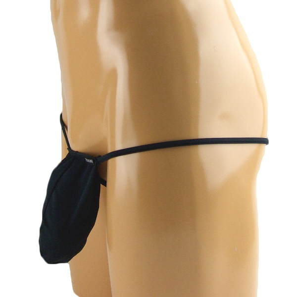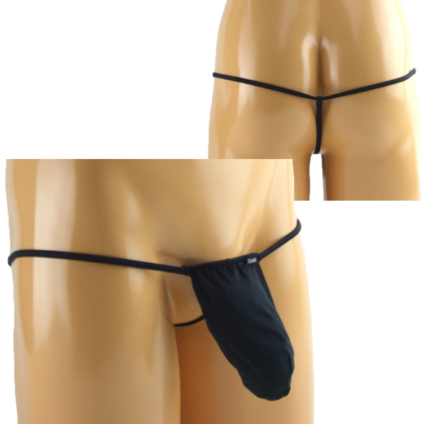 限界まで露出した大胆セクシーな前袋付きGストリング(黒)。