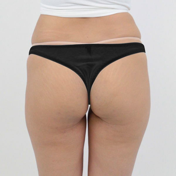 美しいヒップラインを描き出すブラックカラーの日本製Tバック。