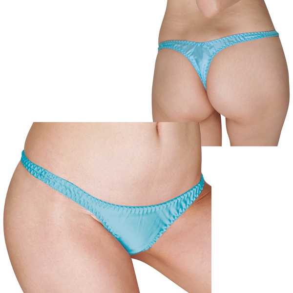 数あるカラーの中で人気なのが、艶やかな光沢を放つターコイズのローライズTバックショーツ(日本製)。